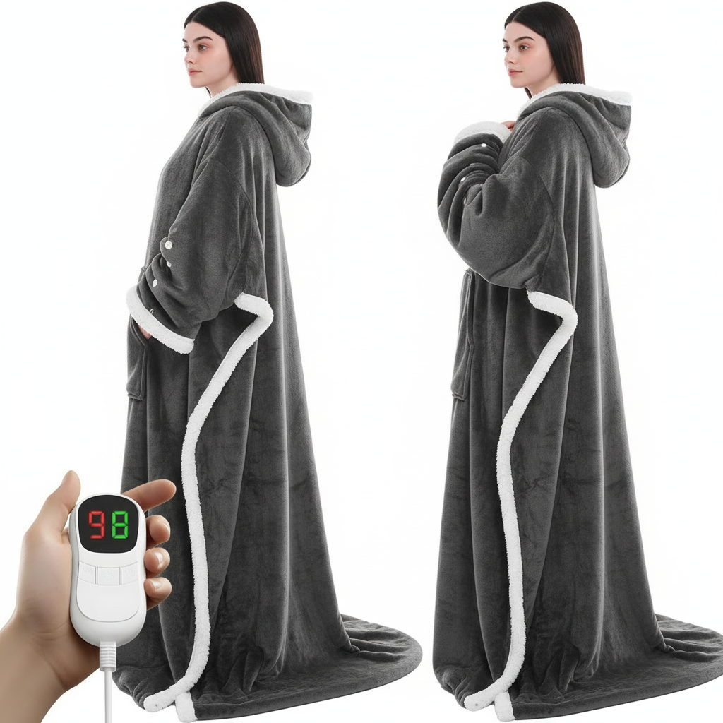 Sherpa-lined comfort + customizable heat. Hands-free warmth for work, reading, and lounging.